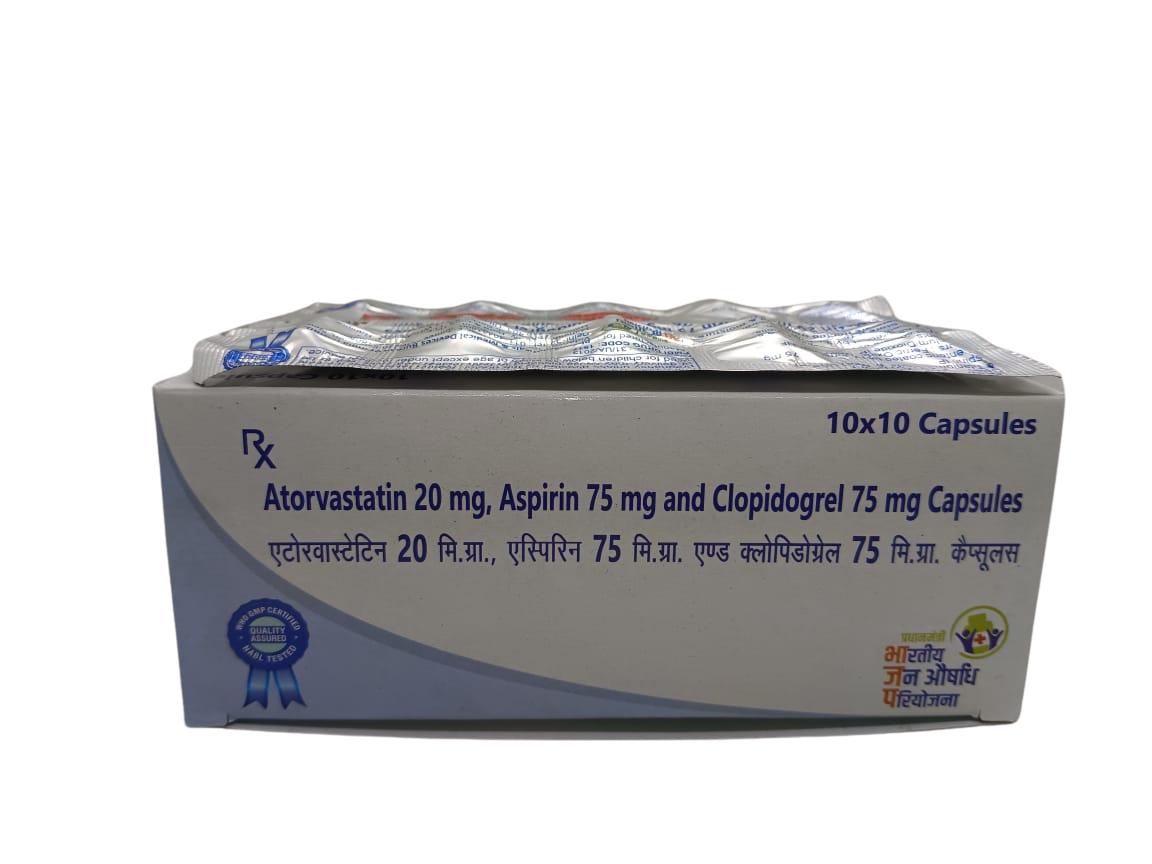 Atorvastatin, Aspirin Gastro-Resistant and Clopidogrel Capsules (20mg , 75mg , 75mg)